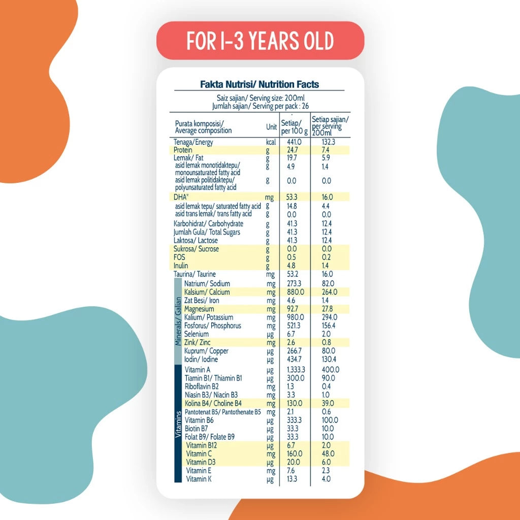 Our Farm Fresh Grow series is made of good natural dairy filled with good essential nutrients like BB-12 Probiotic, FOS Prebiotic, 22 Vitamins and more!